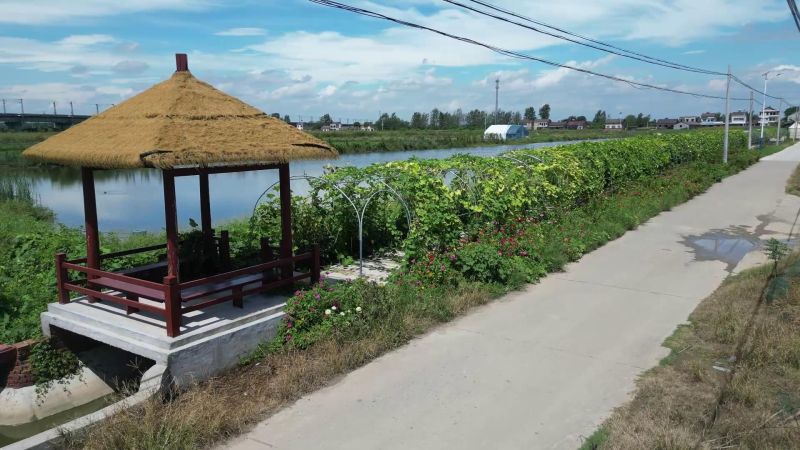 然而,此前这里却是另一番景象。“以前这儿蚊虫滋生,村民路过都要捂着鼻子走,到处都是枸树和带刺的藤蔓,路也不好走。”村民淡雪梅感慨道。经过清淤疏浚、生态修复和系统治理,村里不仅彻底改善了沟渠环境,还通过合作社在廊道内规模化种植经济作物,既美化环境,又为村集体带来可观收入。“现在成了大家散步、休闲的好地方,晚上还能坐在亭子里乘凉,种出来的瓜果还能增收,真是一举两得!”淡雪梅高兴地说。